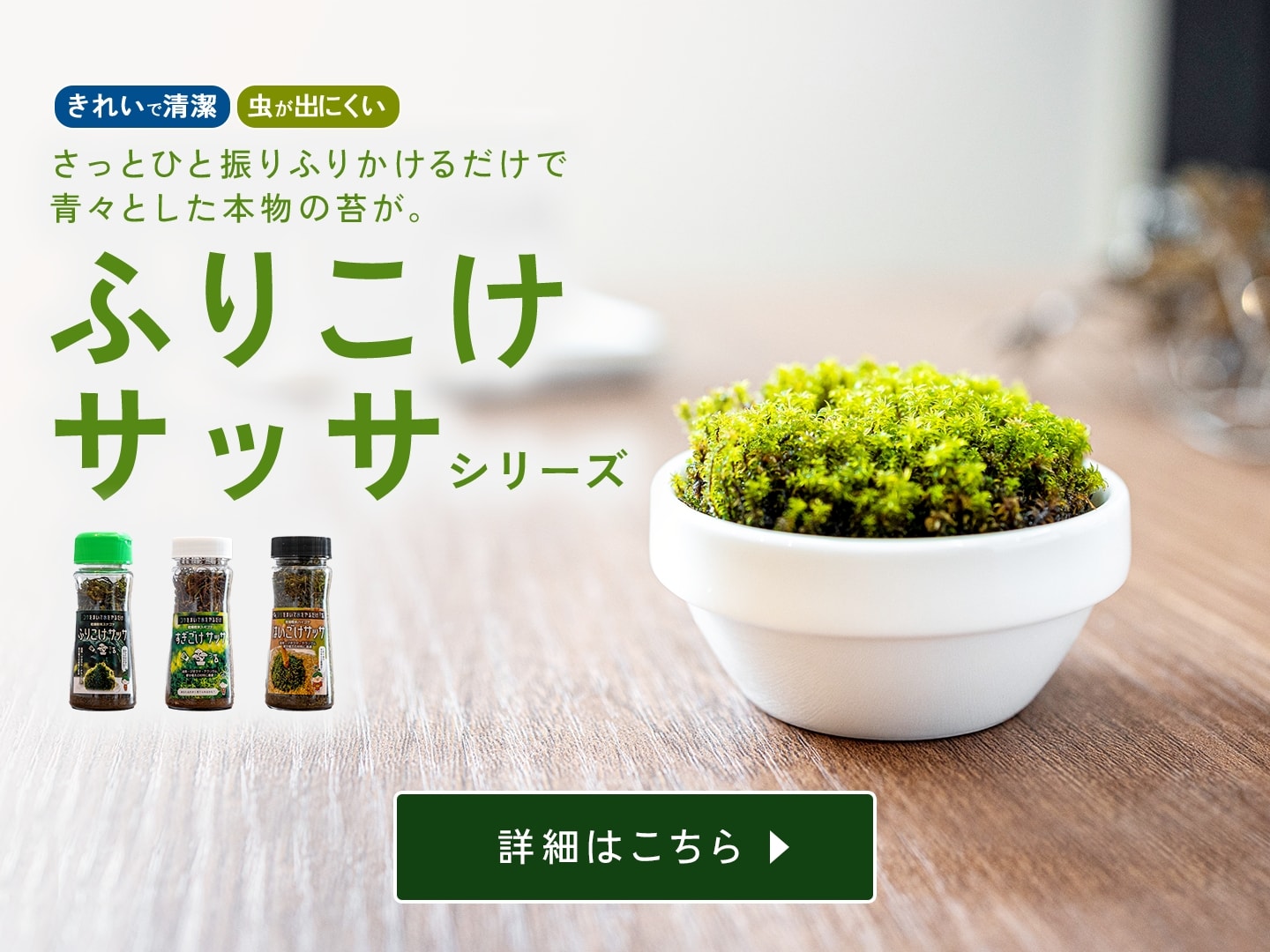 ふりこけ最高Sちゃん/女性満足度道の駅で見かけた「ふりこけサッサ」のネーミングに引き込まれ手にとってみました。土がむき出し、根元のコケが消滅してしまった我が家の紅葉の鉢にパラパラと土の上にかけて水をやるだけ。毎日水をやってお日様に当てるだけで苔が一面に青々と復活。初めてでも超かんたん! -